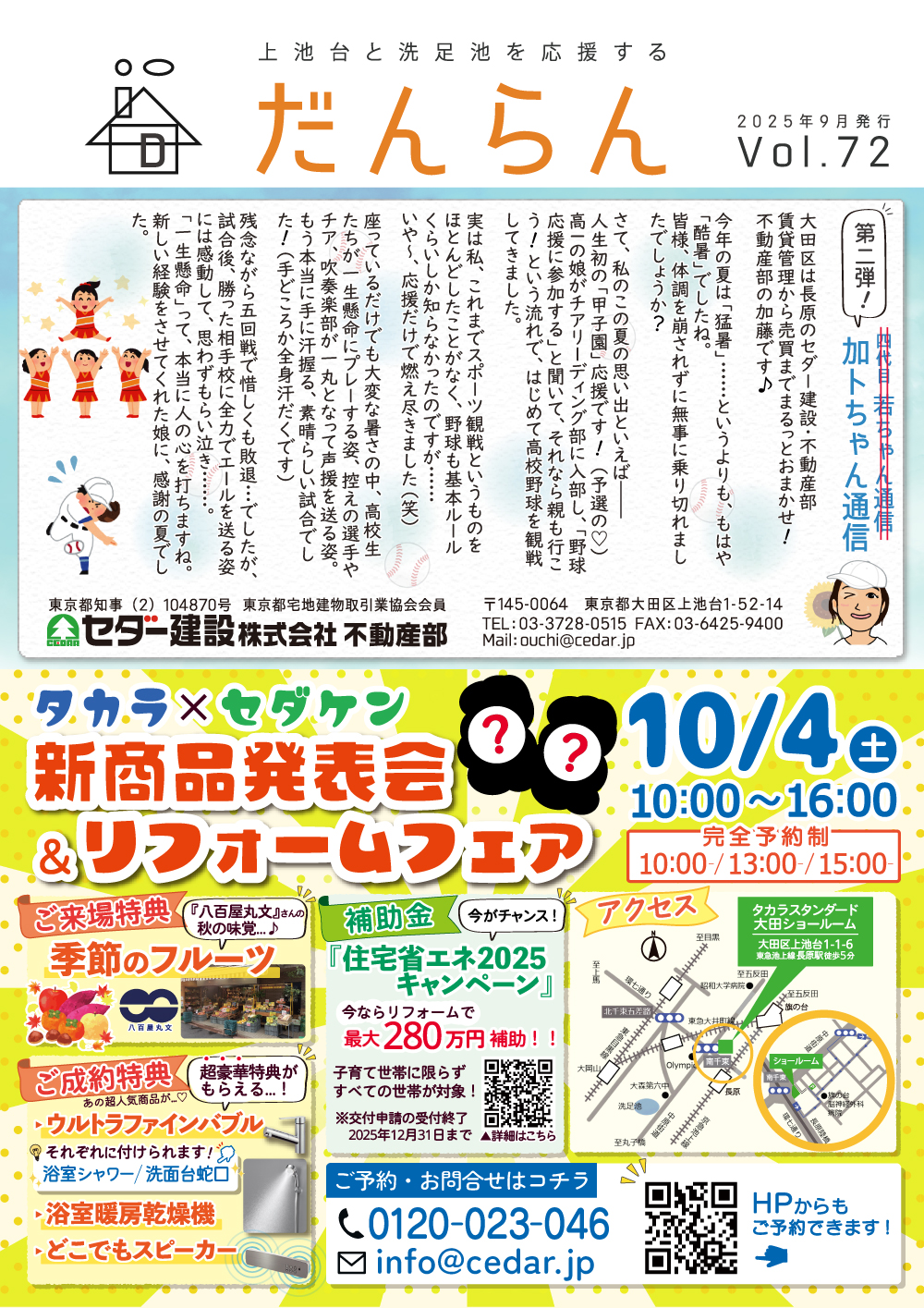 大田区上池台応援ペーパー『だんらん』2025年9月 発行 Vol.72